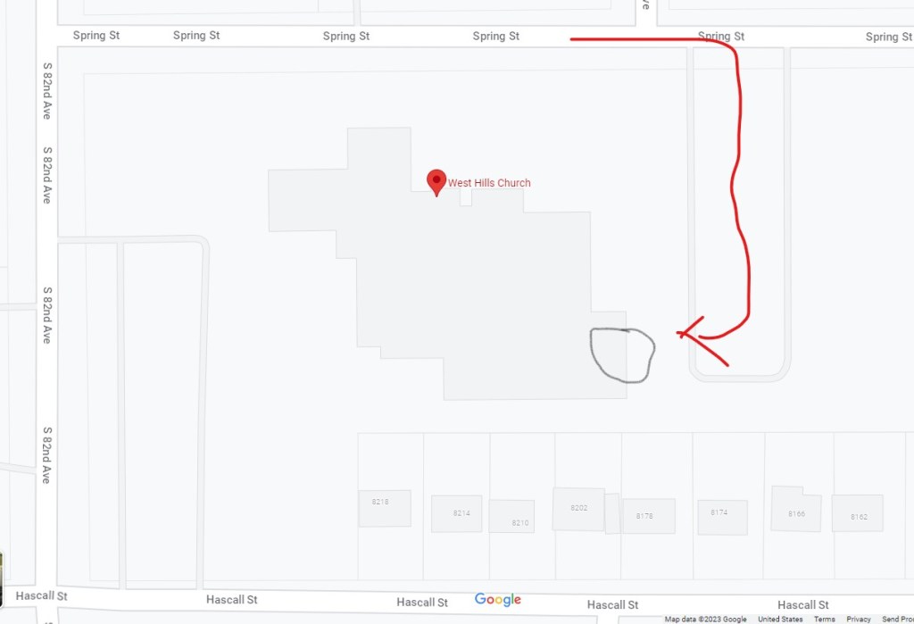 We currently meet on the lowest level of West Hills Church. If you need elevator access to reach us, please enter the building at the far east entrance, using the parking circle access via Spring Street.